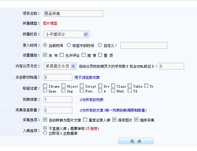 三、以上设置好后点击完毕,然后就可以进行采集了
